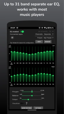 Enjoy your favorite music player in a highly customizable way with a 7-31 band equalizer, multiple sound presets, balance and pre-gain volume.